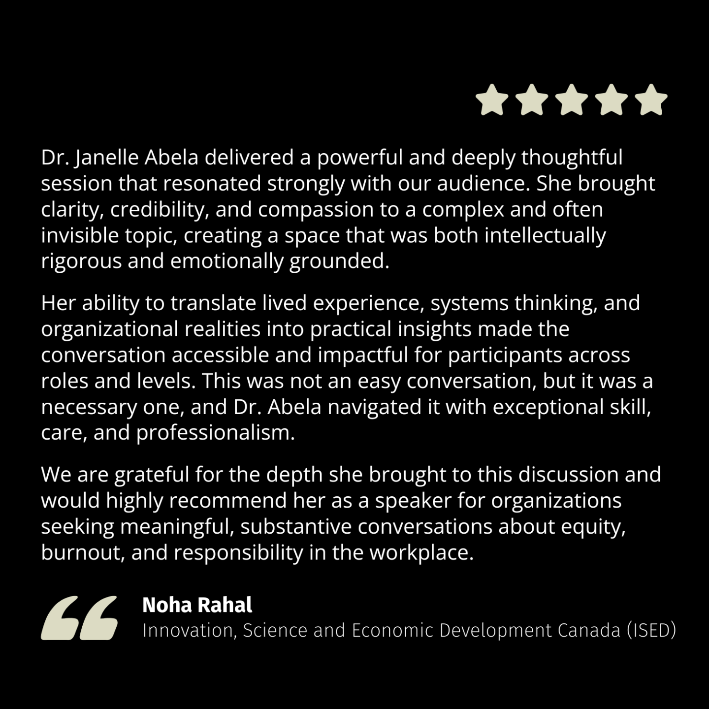 My work is grounded in research, but designed for reality. I start with evidence (peer-reviewed research, policy, and lived experience) and translate it into approaches that can actually survive inside complex organizations.